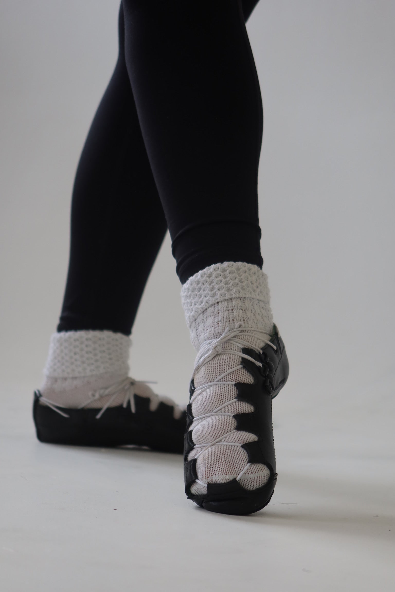 Based on our research into dancer injuries — especially fifth metatarsal fractures — we discovered that the common way dancers wrap laces around the sole can contribute to unwanted pressure, instability, and long-term foot stress.